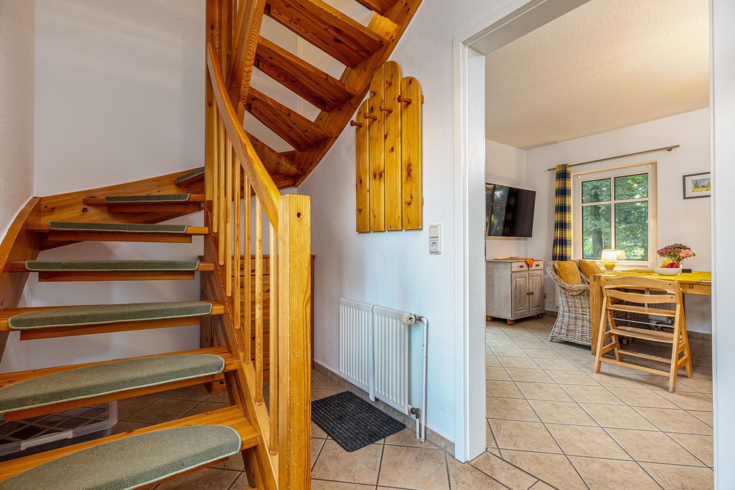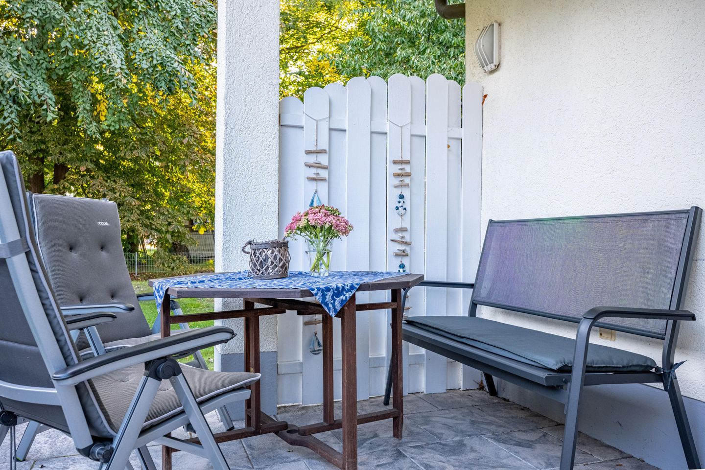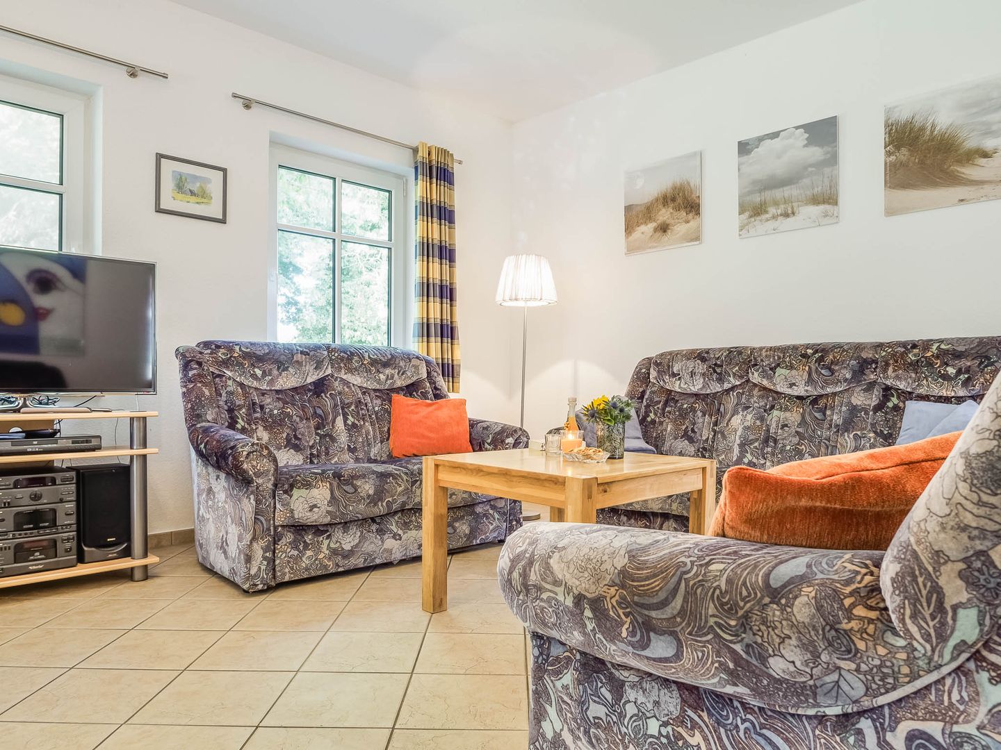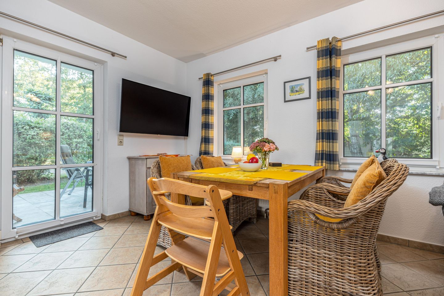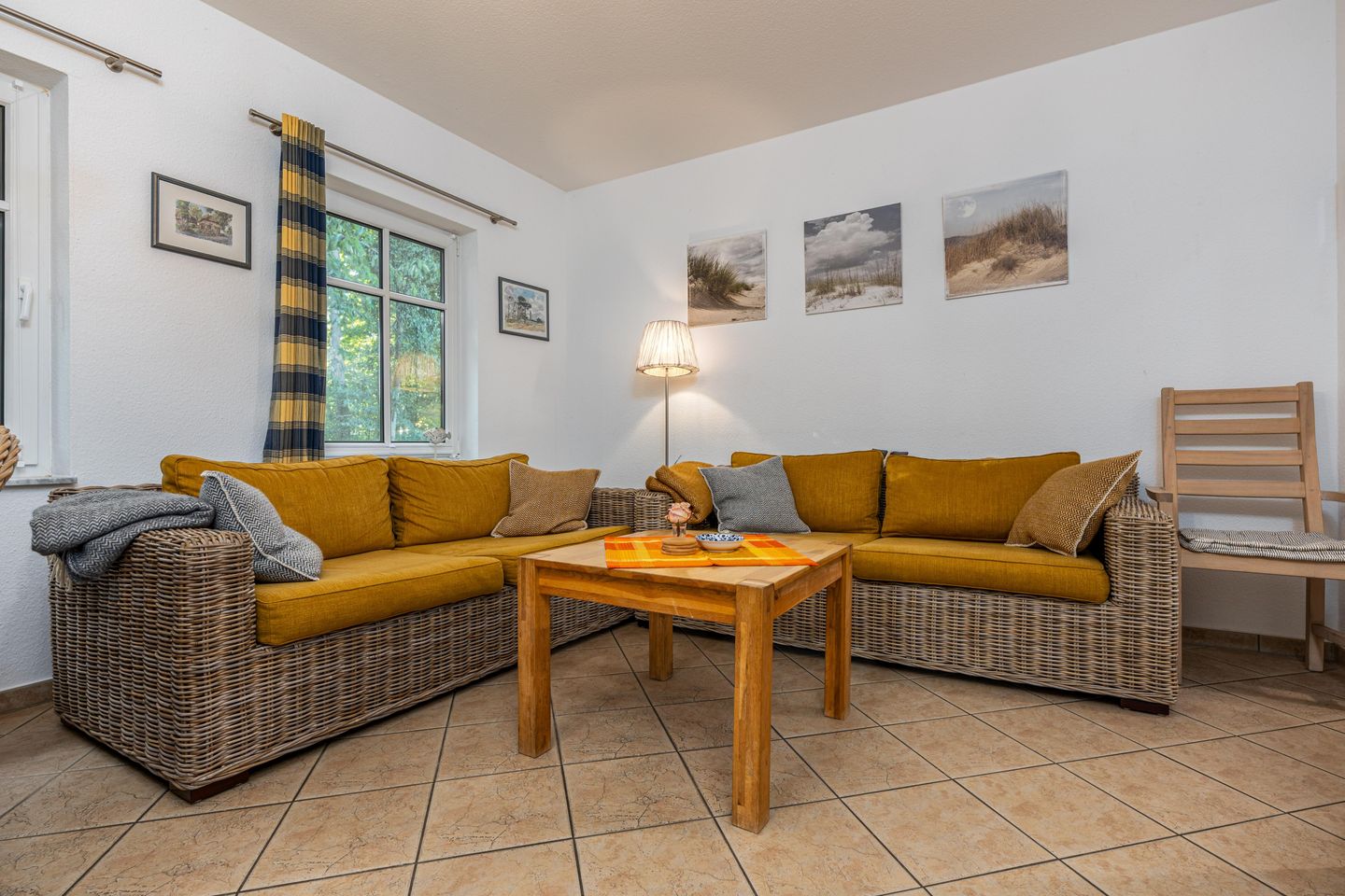 Das 75 qm große Doppelhaushälfte bietet Platz für 4 Personen. Es ist ausgestattet mit zwei Schlafräumen (1x1Doppelbett,1x2 Einzelbetten), einem Wohnbereich mit einer Küchenzeile, einem Bad mit Dusche und WC sowie einem Gäste-WC. Zur weiteren Einrichtung gehört ein Fernsehgerät, ein Radio, eine Waschmaschine, sowie eine Terrasse mit Gartenmöbeln.
