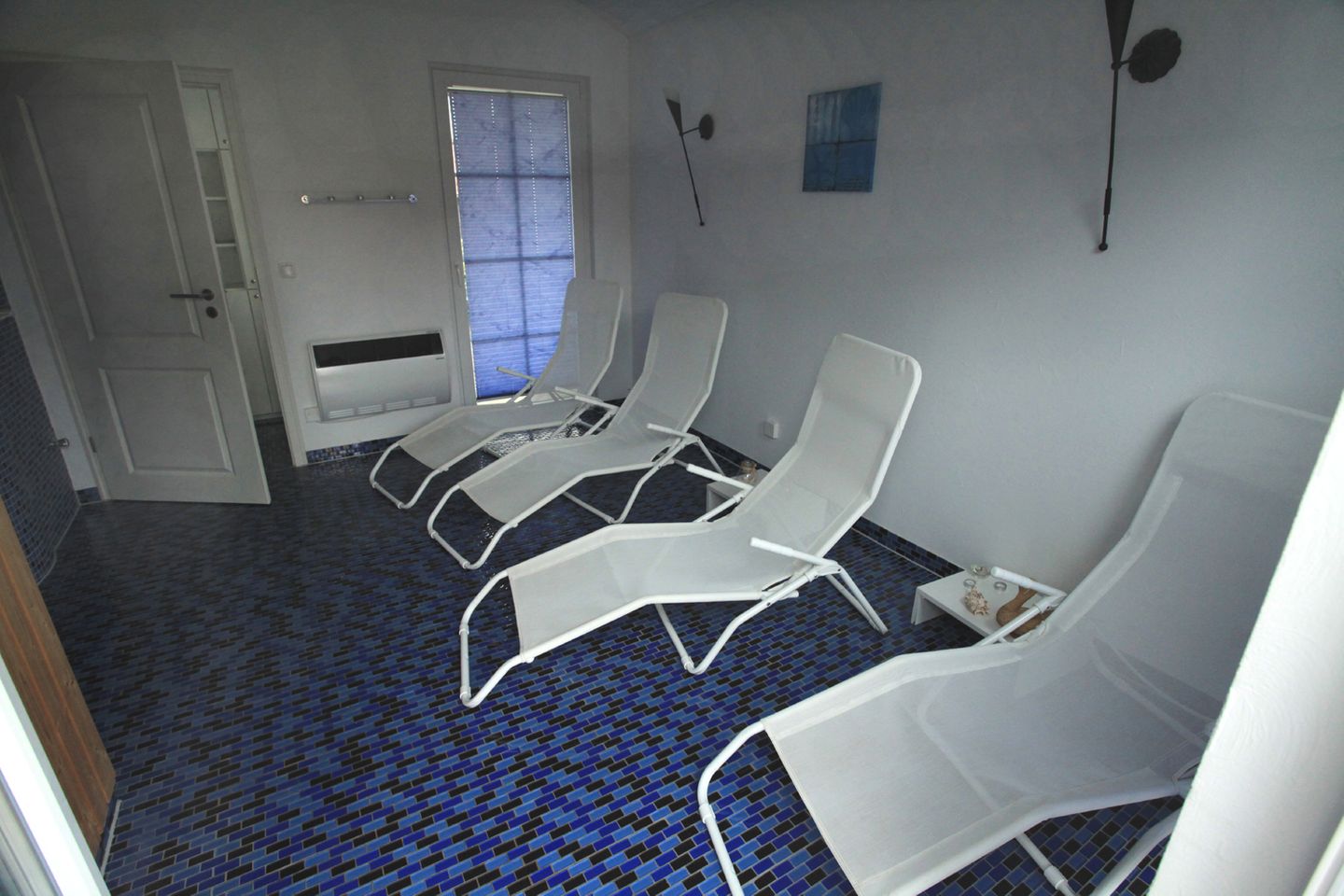 10 m entfernt können Sie im Saunahäuschen entspannen (das Saunahäuschen teilen Sie sich mit anderen Gästen)